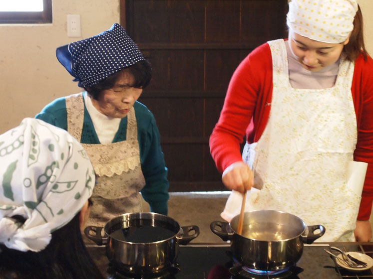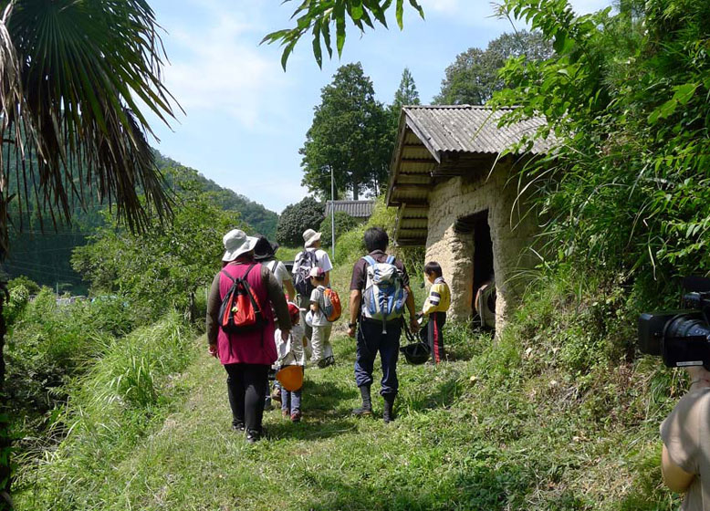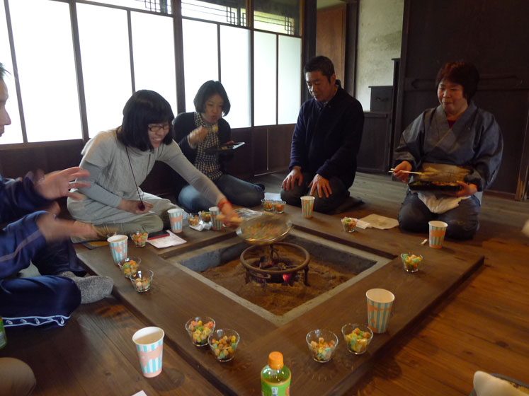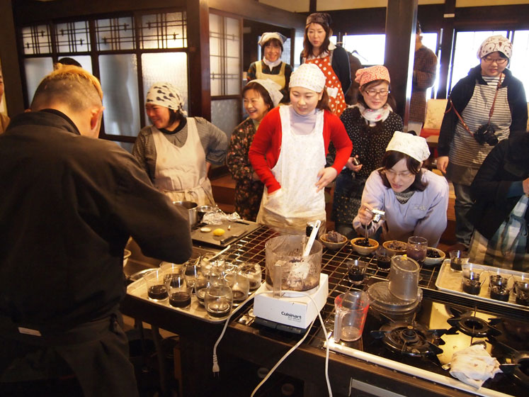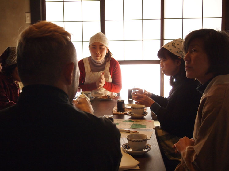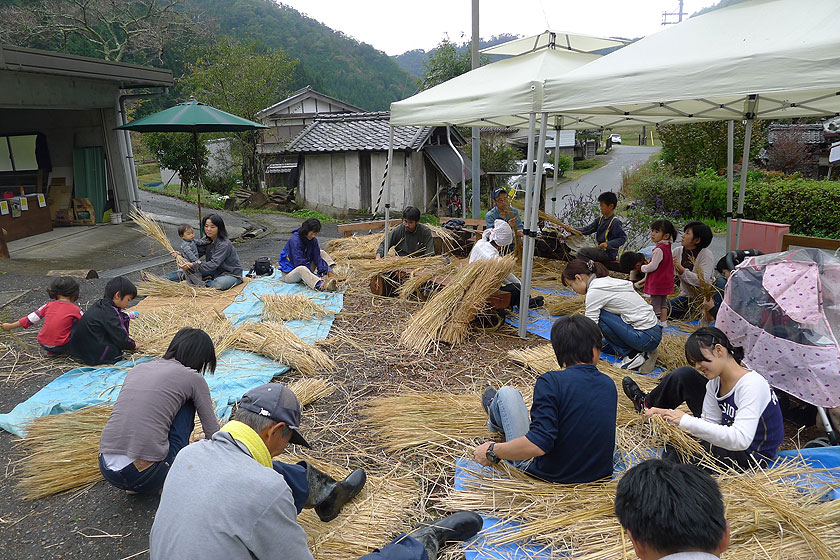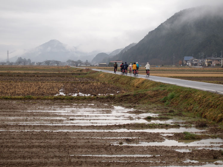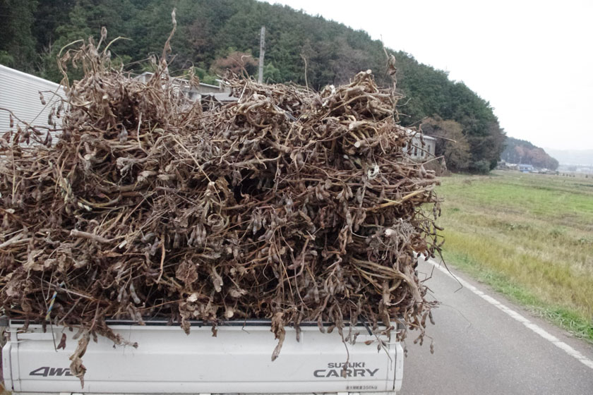 師走の時期、黒豆の出荷に追われる篠山の地をサイクリング。黒豆畑で黒豆が乾燥されている様子、そして集落営農の組合が運営する脱穀場など通常は触れることのできない「普段着の黒豆」を学ぶことができる研修型サイクリングツアーです。軒先や畑で作業する方々に声をかけ、臨時でガイドをお願いすることも-道端に立ち止まっての地域の方々とのふれあいも魅力です。見学後は地元の方提供の黒豆づくりランチ付き。2012年も開催予定です。